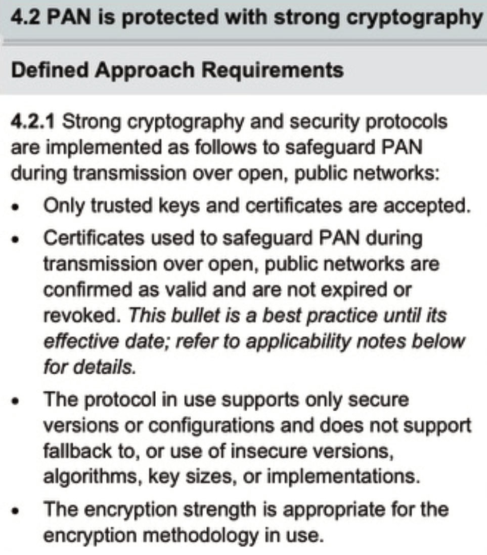 If you are responsible for managing digital certificates for your organization, you will want to pay attention here. In just 3 short years, certificates will see an almost 10x reduction in lifespan. This means not only that the certificate itself will need to be replaced to be considered valid (obviously), but relevant compliance frameworks that you adhere to will require it for transmission controls. PCI DSS Requirement 4.2 states: